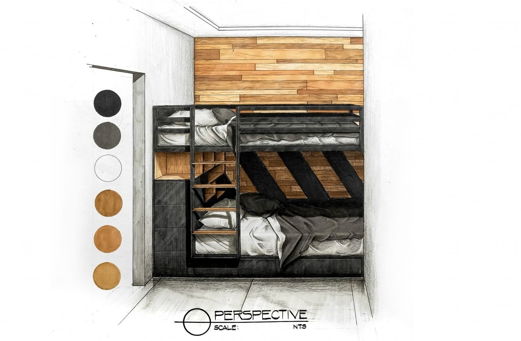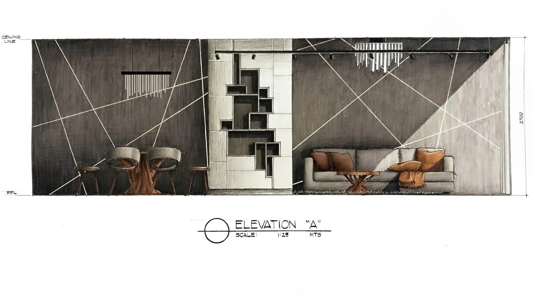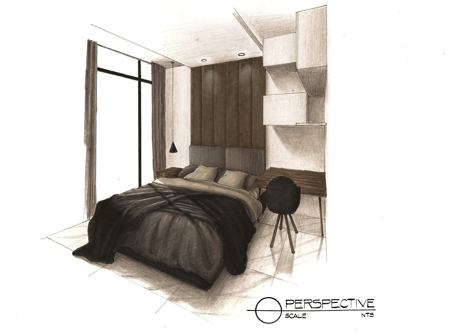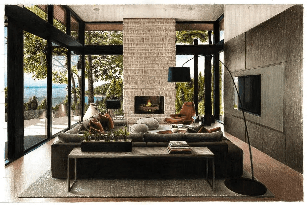 The design approach applies a contemporary–industrial aesthetic using wood, concrete, natural stone, and glass to create a cohesive and minimalist interior environment. Through plan layouts, elevations, and hand-drawn interior perspectives, the exercise investigates how materiality, light, and proportion can elevate residential interiors while maintaining practicality and clarity in design.