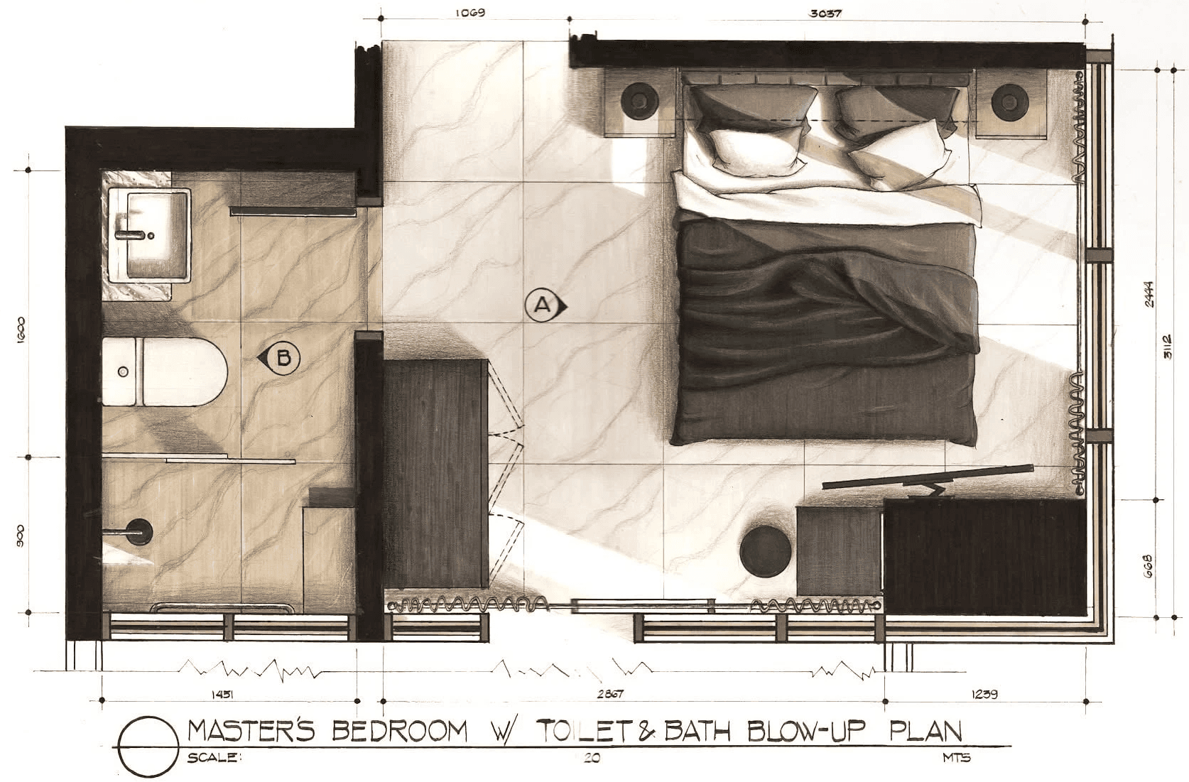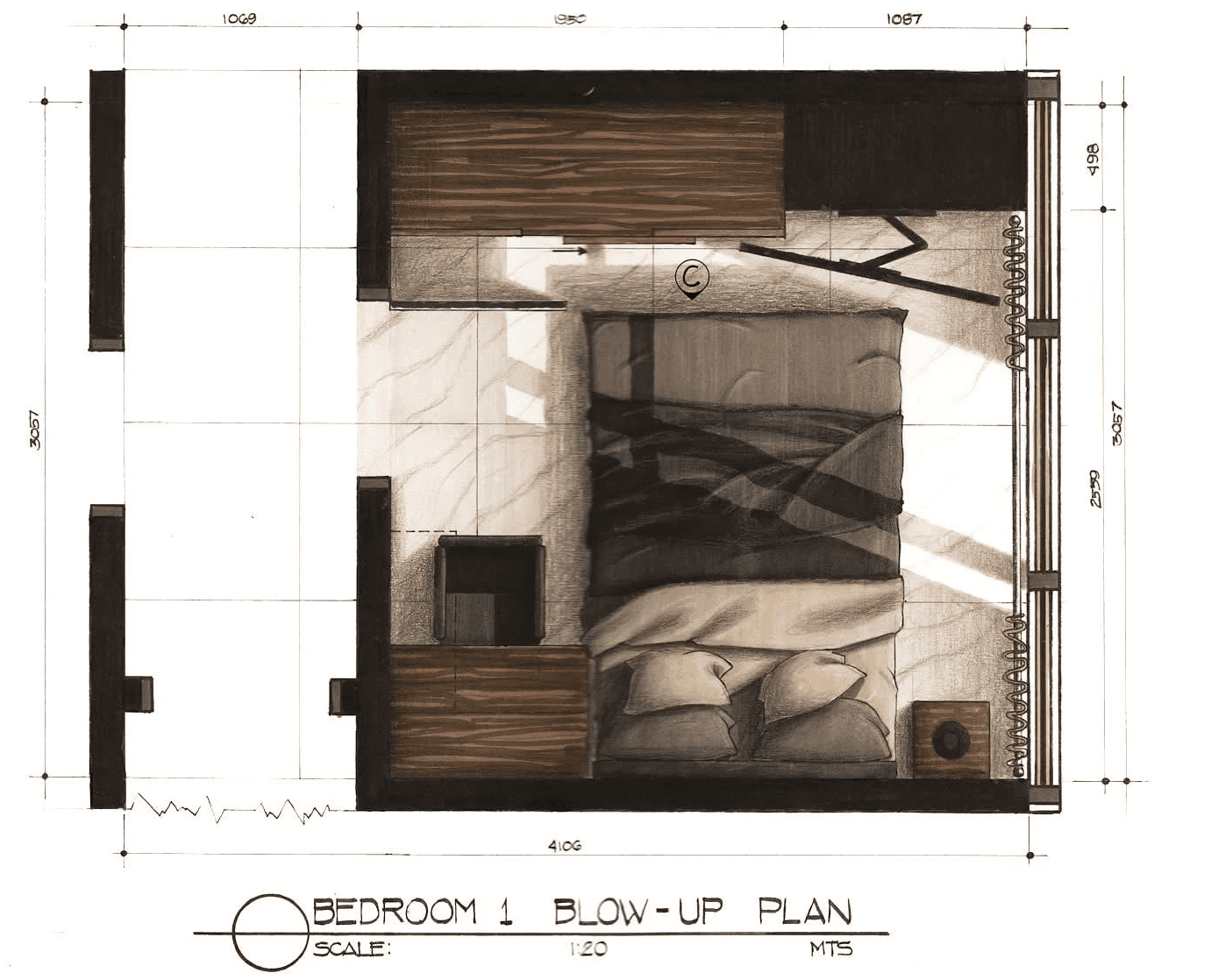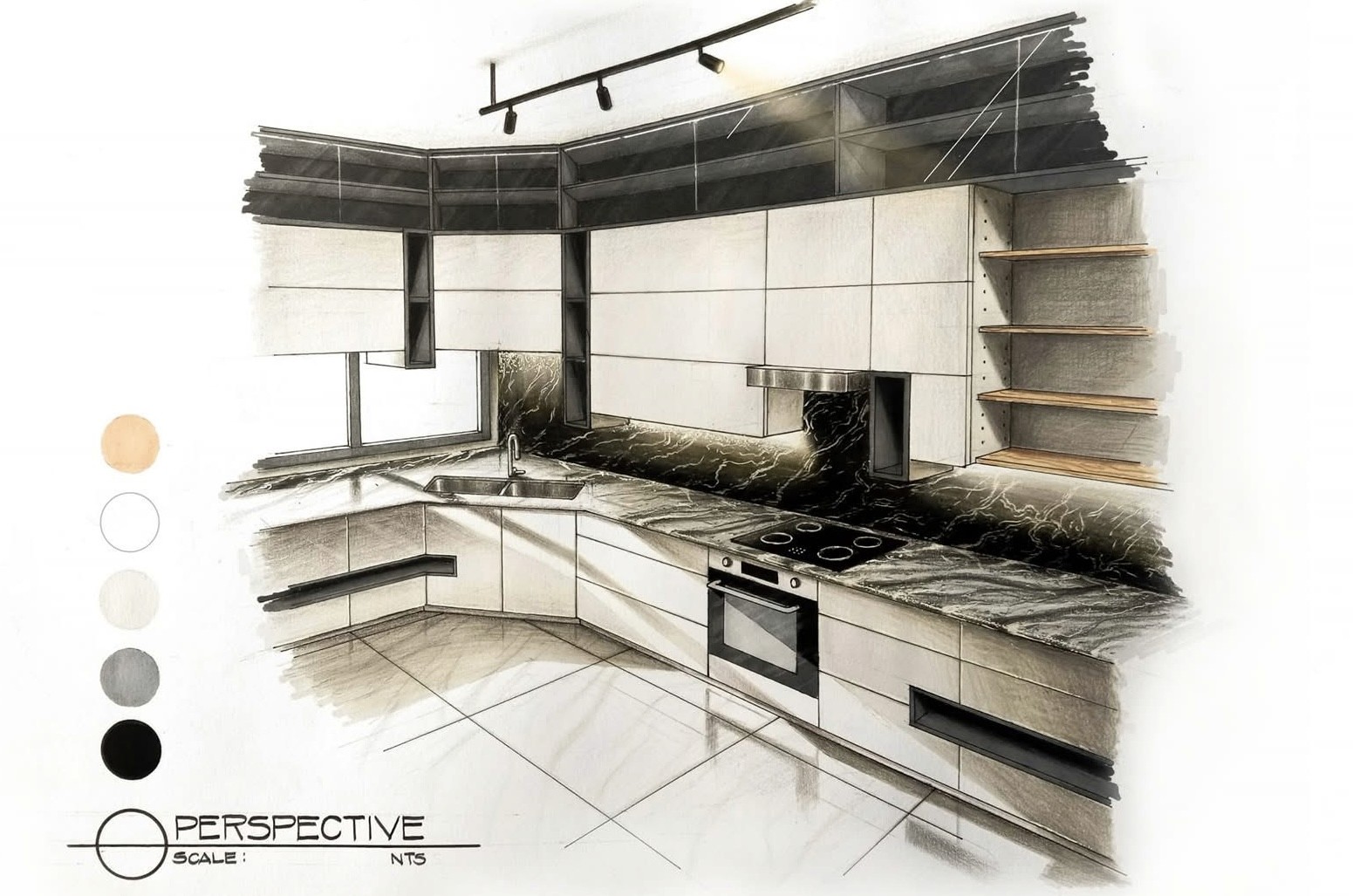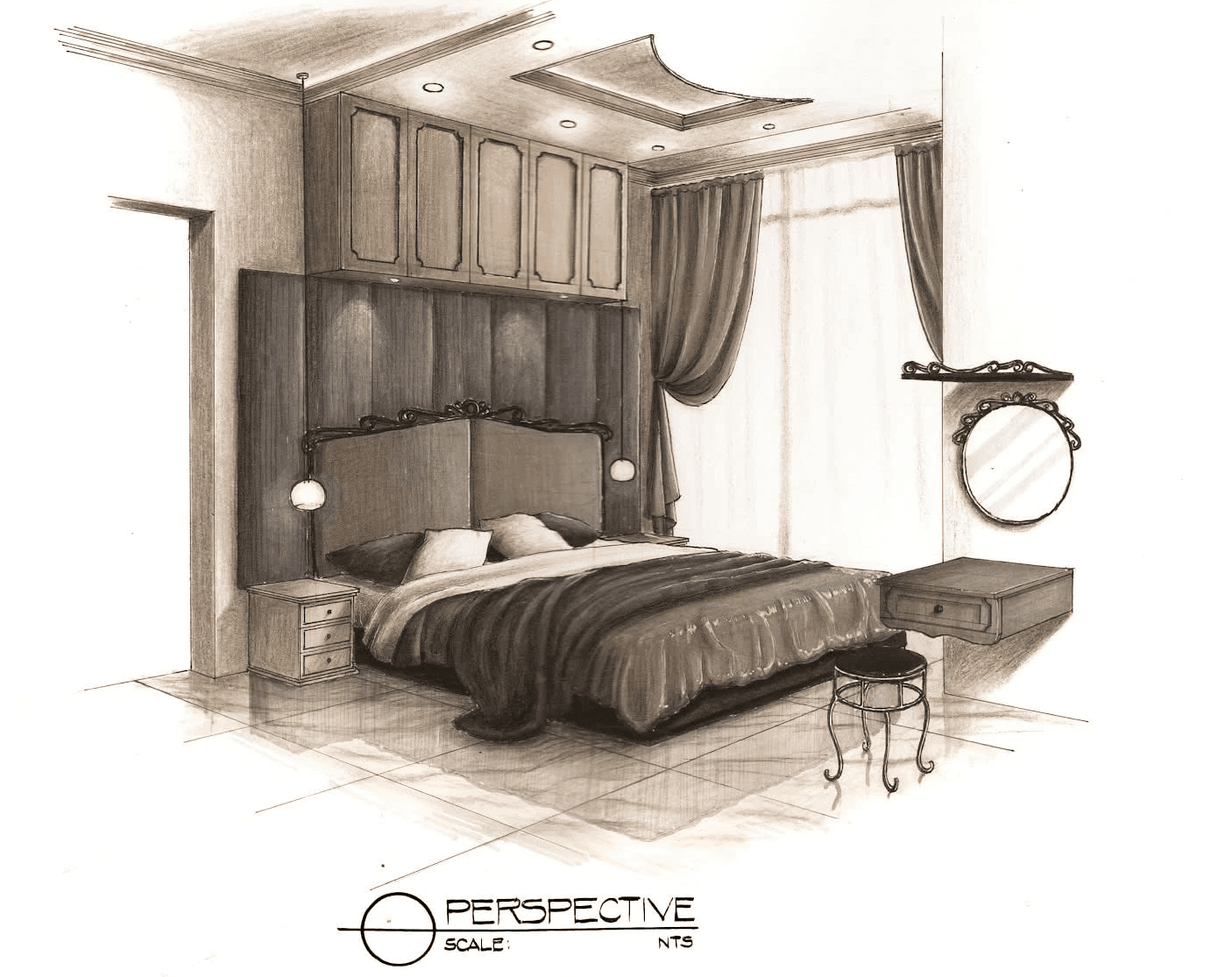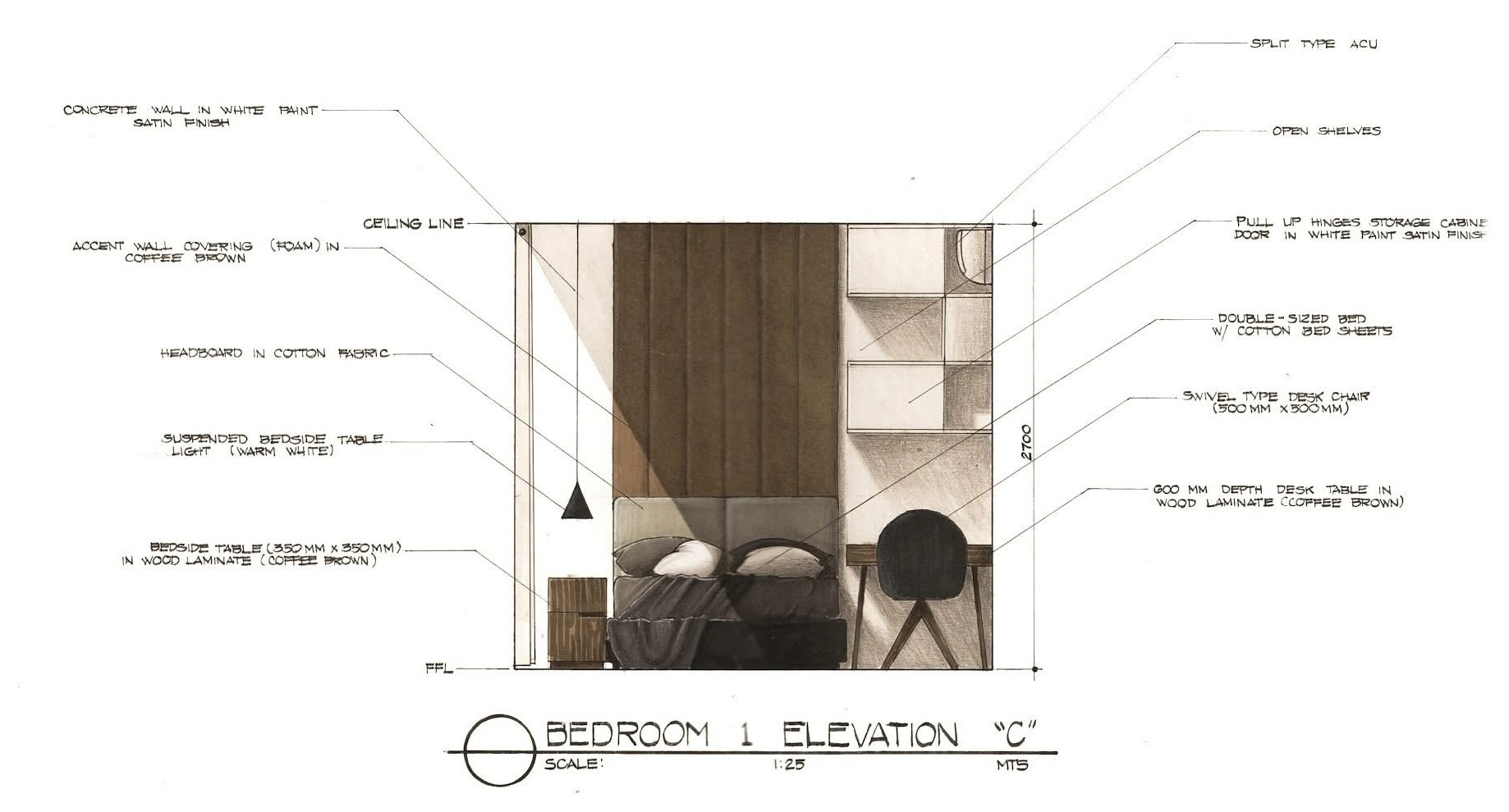 The design approach applies a contemporary–industrial aesthetic using wood, concrete, natural stone, and glass to create a cohesive and minimalist interior environment. Through plan layouts, elevations, and hand-drawn interior perspectives, the exercise investigates how materiality, light, and proportion can elevate residential interiors while maintaining practicality and clarity in design.