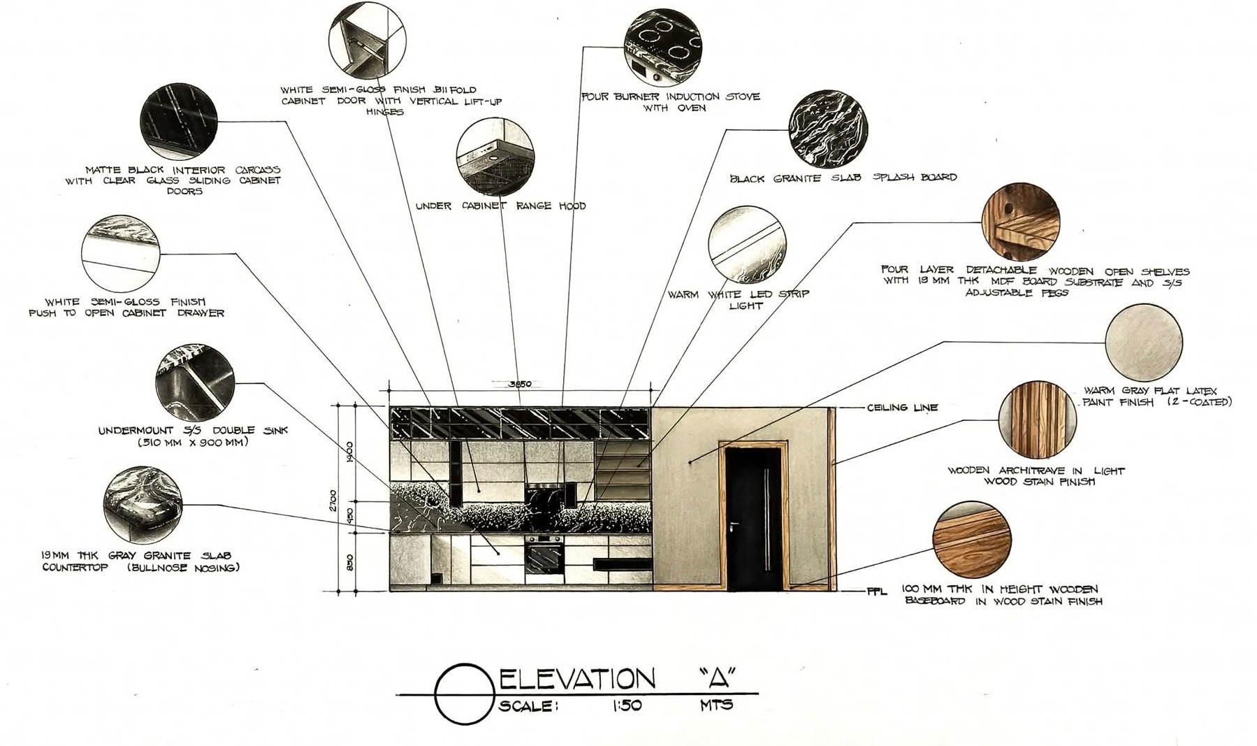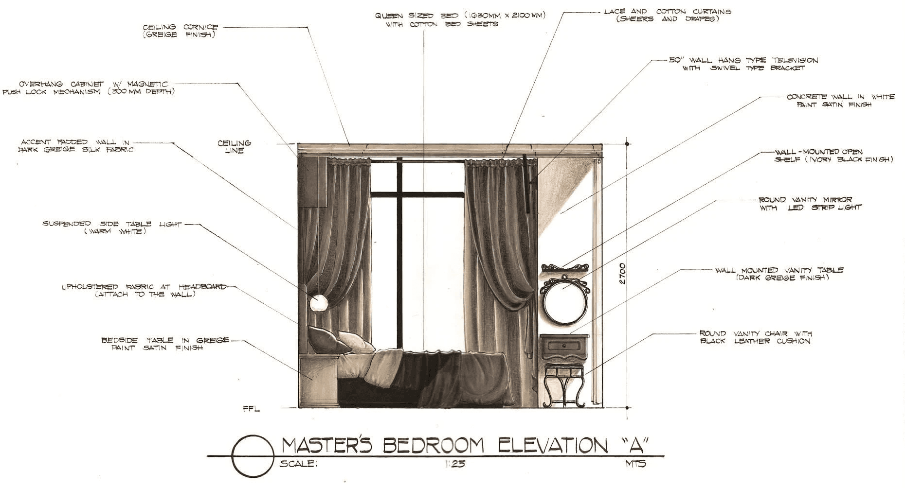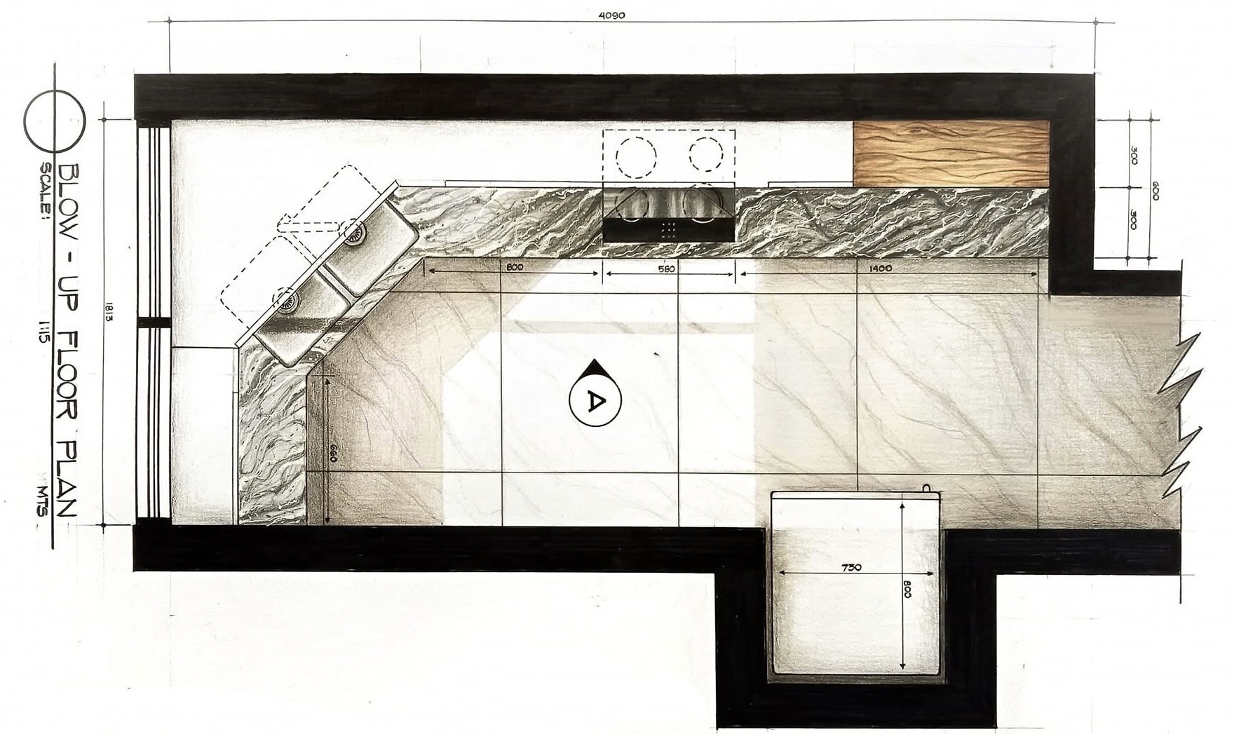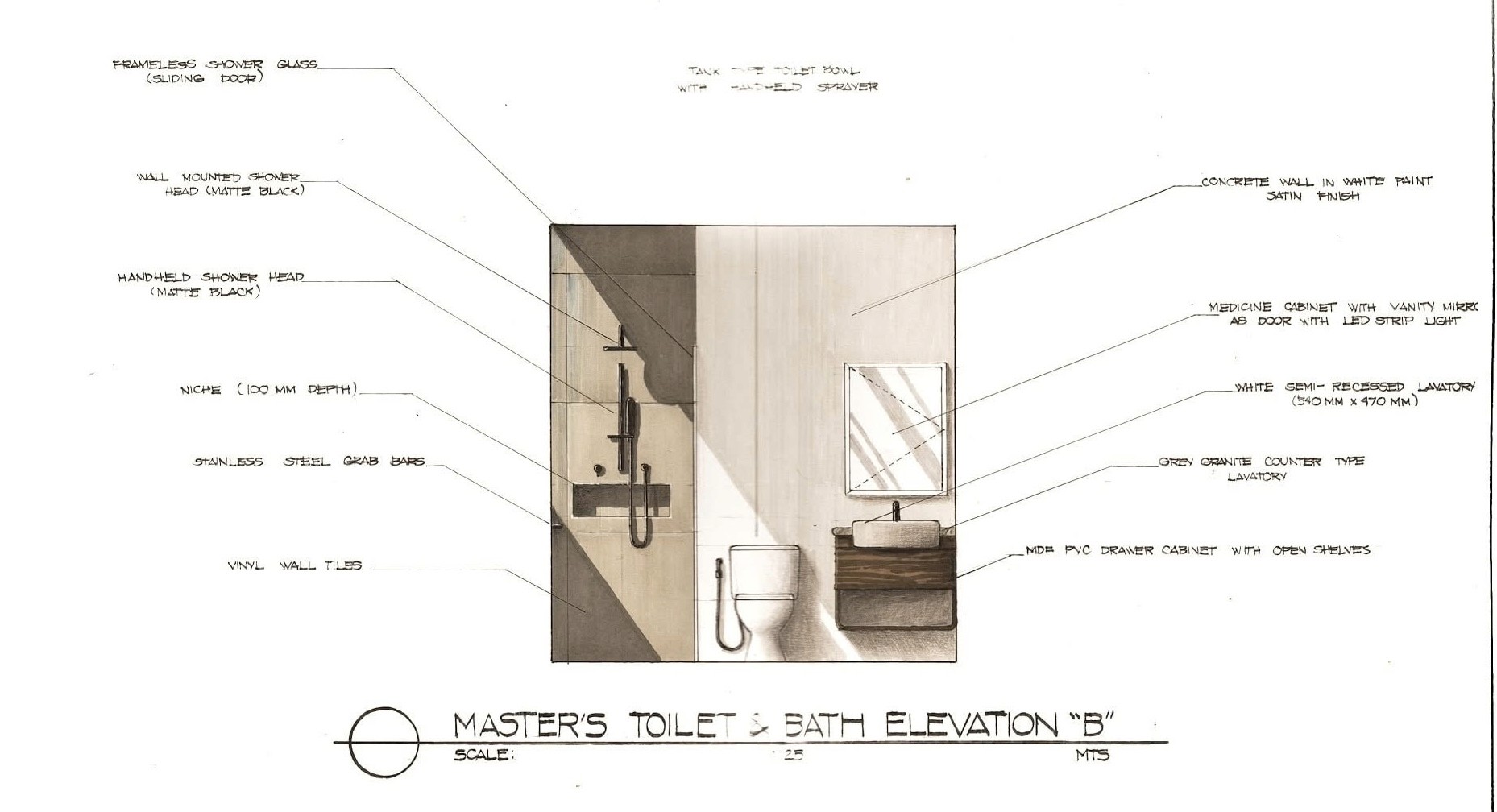 The design approach applies a contemporary–industrial aesthetic using wood, concrete, natural stone, and glass to create a cohesive and minimalist interior environment. Through plan layouts, elevations, and hand-drawn interior perspectives, the exercise investigates how materiality, light, and proportion can elevate residential interiors while maintaining practicality and clarity in design.